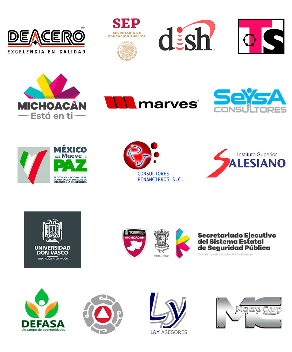 “Tenemos el gusto de haber sido evaluados satisfactoriamente por grandes clientes e instituciones cada vez que trabajamos con ellos, algunos de estos son:”